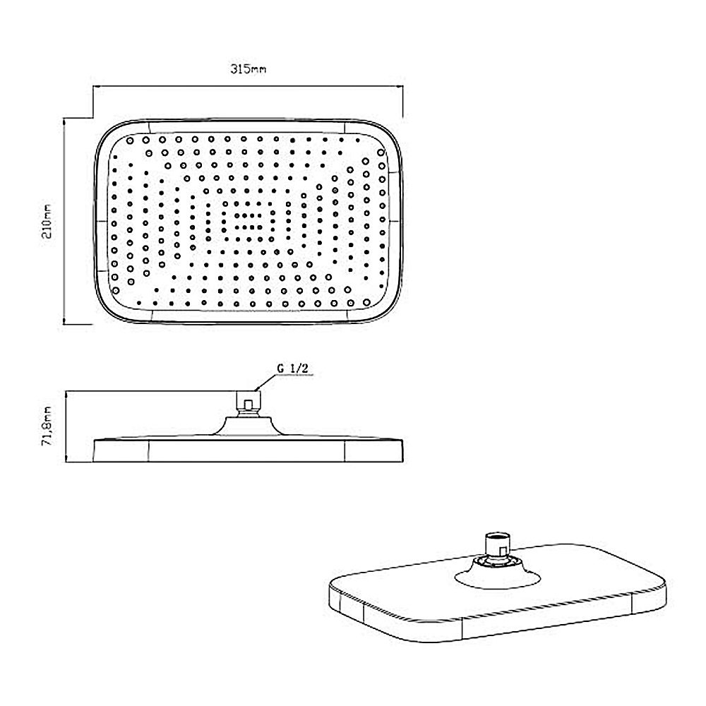 Верхний душ из ABS пластика, держатель из нержавеющей стали.
