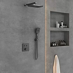 Комплектация: Верхний душ, держатель ручного душа, ручной душ, встраиваемый смеситель.