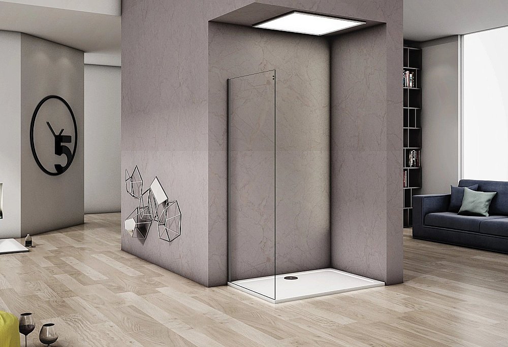 Душевой уголок с раздвижной дверью и неподвижной боковой стенкой.