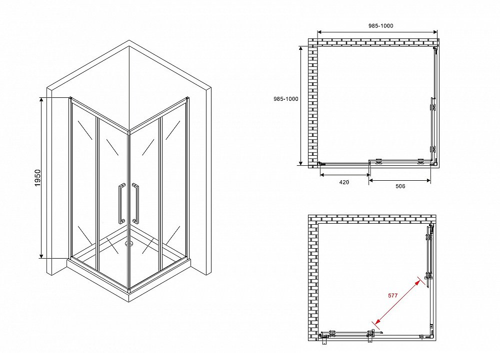 Душевой угол в нишу из коллекции SCHWARZER DIAMANT от германского производителя Abber. • Двойные ролики, увеличенные металлические ручки • Регулировка ширины • Поддон приобретается отдельно. Гарантия 3 года.