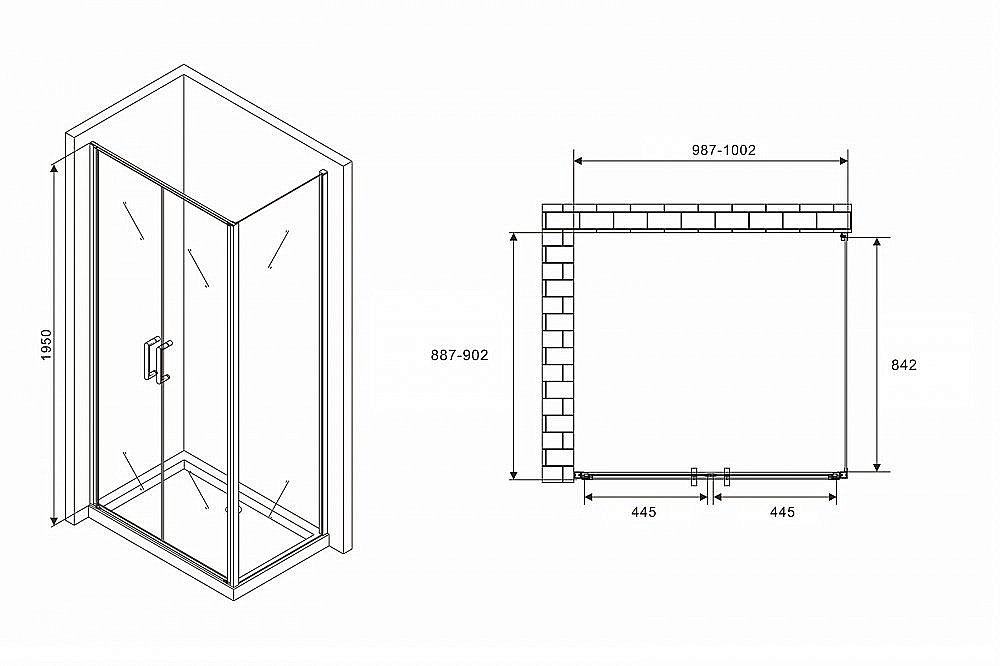 Душевой угол от немецкого производителя Abber • Прямоугольный душевой уголок • Двери: две распашные • Стекло: закаленое прозрачное 6 мм • Профиль: черный • Особенности: • • металлические ручки • • универсальный монтаж • • поддон приобретается отдельно Гарантия: 3 года.