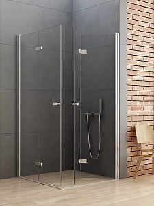 Душевой угол от немецкого производителя Abber • Прямоугольный душевой уголок • Двери: 2 створки, складная • Стекло: закаленое прозрачное 6 мм • Профиль: хром • Особенности: • • металлические ручки • • универсальный монтаж • • поддон приобретается отдельно Гарантия: 3 года.