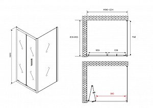 Душевой угол в нишу из коллекции SONNENSTRAND от германского производителя Abber. • Металлические ручки • Поддон приобретается отдельно. Гарантия 3 года.