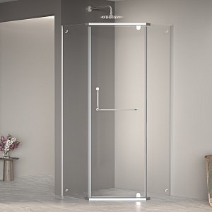 Душевой уголок трапеция с распашной дверью. Трап или поддон приобретается отдельно.