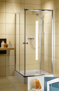 Душевой уголок RB90HPD-C органично впишется в современный интерьер ванной комнаты и станет достойной альтернативой душевой кабине.  Квадратная конструкция состоит из двух неподвижных и двух подвижных полотен, образующих раздвижной вход. Благодаря раздвижной системе двери открываются плавно и аккуратно, не перекашиваются и не заедают. Их можно снять, что существенно облегчит уборку в труднодоступных местах. Полотна произведены из закаленного и безопасного стекла, которое легко чистится и не накапливает известковый налет. Матовые стеклянные двери придадут великолепный вид и практичность, а также помогут сохранять приватную обстановку. Профиль из нержавеющего алюминия придает конструкции надежность и долговечность.