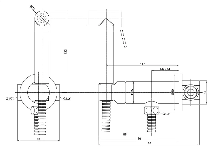 ВНИМАНИЕ! Шланг и лейка не рассчитаны на постоянное запорное давление, после использования необходимо закрыть подачу воды в смесителе.