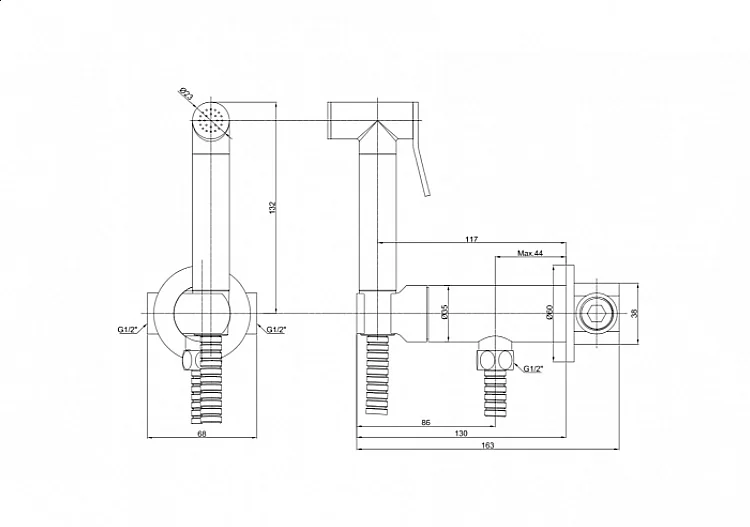 ВНИМАНИЕ! Шланг и лейка не рассчитаны на постоянное запорное давление, после использования необходимо закрыть подачу воды в смесителе.