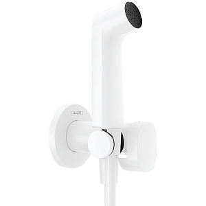 Гигиенический душ со смесителем Giulini, отделка белый матовый, состоит из: смеситель однорычажный (со скрытой частью) с керамическим картриджем, и держателем для лейки. Гигиеническая лейка с одним режимом струи. Шланг в двойной металической оплетке, длина 1,2 метра. Подключение к воде 1/2"