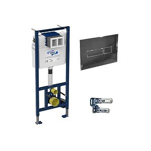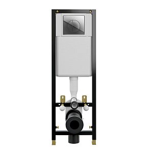 Узкая рама шириной 41 см. Металлический каркас, окрашенный антикоррозийной эмалью. Расчетная нагрузка 400кг. Объём резервуара воды 10 л с тепло- и шумоизоляцией. Подвод воды внутрь резервуара (G1/2 наружная). Объем смыва 3/6 литра с возможностью регулировки. Управление механическое, две кнопки. Межосевое расстояние под шпильки для подвеса унитаза 18 и 23 см. Полный комплект для установки включает в себяшумоизоляционную прокладку и лекало для монтажных отверстий.
