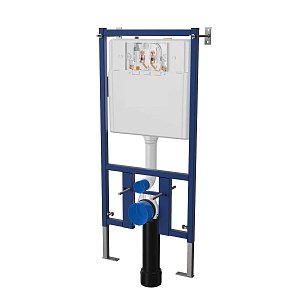 Металлическая инсталляционная рама (11,5 кг) с бачком 10 литров с тепло-шумоизоляцией, крепление для унитаза с возможностью регулировки расстояния от 180 до 230 мм. Уровень шума при давлении 3 бар не превышает 9 дБ.
