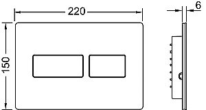 Очень плоская металлическая панель смыва, клавиши с резиновыми накладками, в комплект входят толкатели и крепежные элементы. Панель смыва имеет скрытое винтовое крепление.