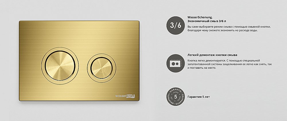 Кнопка для инсталляции WasserKraft MG01 золото матовое