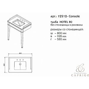 Консоль с раковиной и со столешницей Caprigo Хотел 80.