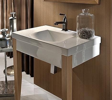 Kerasan Bentley объединяет унитаз и биде на «ножках» из дерева, отдельностоящую впечатляющую ванну, шесть моделей умывальников, мебель, зеркала, аксессуары, и особенную пристенную композицию, чтобы обновить «уголок» в ванной комнате без необходимости встраивать изделия.