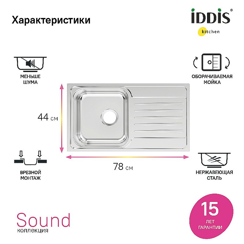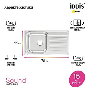 Кухонная мойка Iddis Sound 78 SND78PDi77 сталь