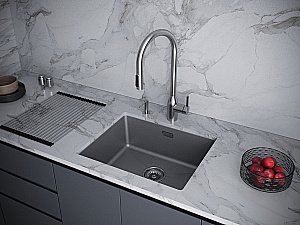 Материал мойки не нужно герметизировать, и, поскольку он не пористый, то он максимально устойчив к окрашиванию.