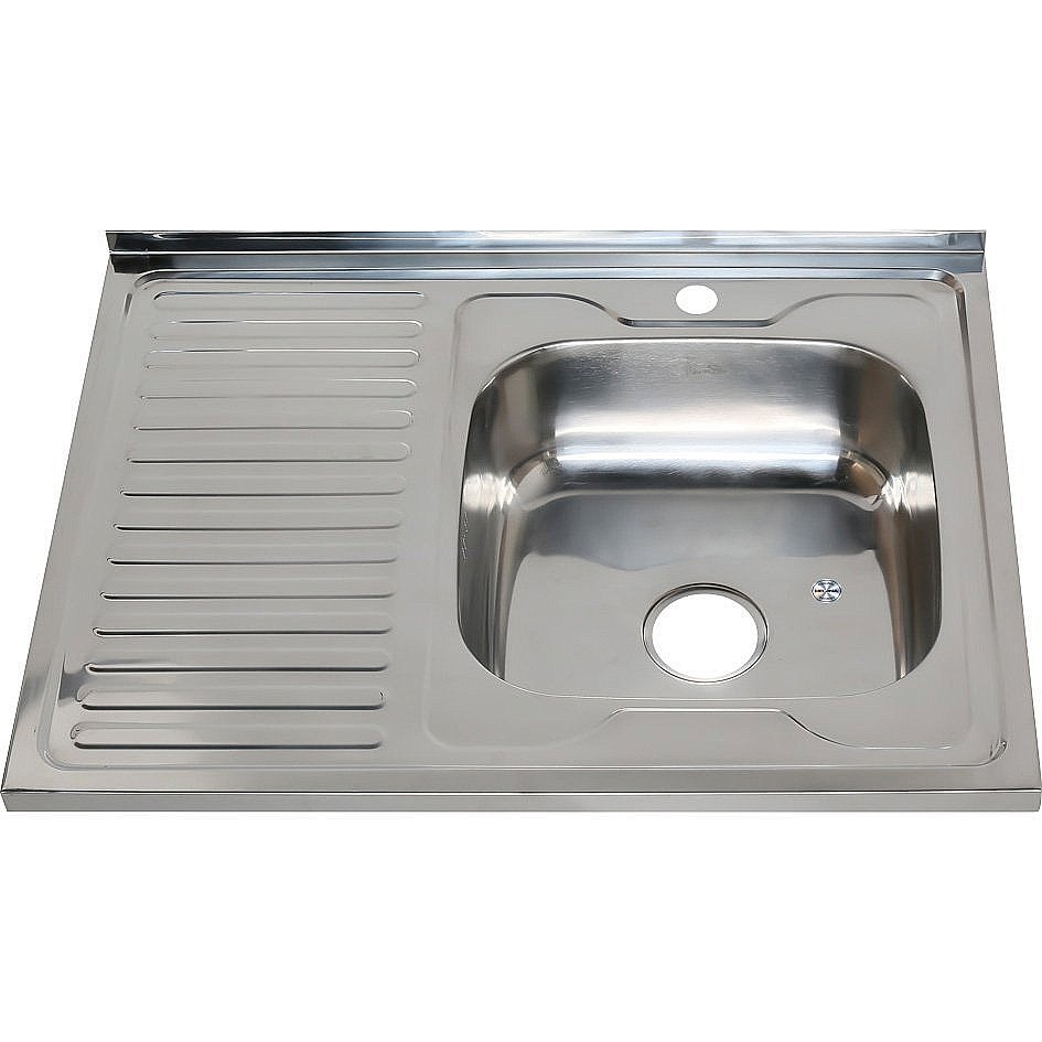 Большая накладная мойка 80х60 очень удобна в использовании. Широкое крыло позволяет организовать дополнительную рабочую поверхность, на которой можно сушить вымытую посуду и овощи, размораживать продукты, ставить горячие сковороды и кастрюли. Глубокая чаша обеспечивает необходимую вместительность и при этом не позволяет брызгам воды разлетаться. При этом шум от воды во время использования мойки минимален. Толстая стать и широкая звукоизолирующая накладка делают ее "тихой". За мойкой легко ухаживать, а загнутый край, примыкающий к стене, препятствует попаданию влаги и загрязнений за тумбу, что обеспечивает гигиеничность на кухне. В конструкции мойки предусмотрено место для установки смесителя, что позволяет компактно и функционально организовать пространство. Кухонная мойка легко монтируется. Она подходит для стандартных кухонных шкафов с шириной столешницы 60 см. Необходимый для установки набор креплений и сифон с выводом для подключения к канализации входят в комплектацию мойки.