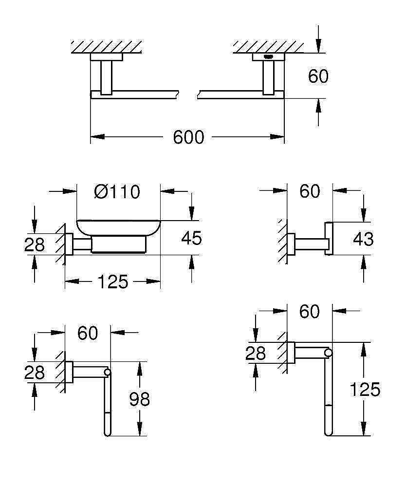 Набор аксессуаров Grohe Essentials Cube (5 предметов) 40758001