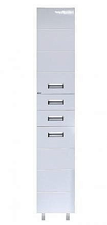 Пенал Misty Селена выполнен из МДФ, ЛДСП и имеет два отделения с дверками, 2 выдвижных ящика, Внутреннее пространство верхнего отделения разделено вставными полочками для хранения косметики, бытовой химии и банного текстиля, нижнее - оснащено бельевой корзиной, а так же в центре расположены 2 выдвижных ящика для мелочей.