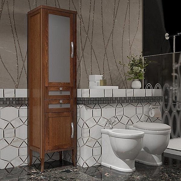 Модельный ряд коллекции МИРАЖ выполнен в двух вариантах — 100 см и 120 см, а также снабжен оригинальными дополнительными решениями для хранения: напольные комод, одностворчатый и двустворчатый пеналы, зеркала   с дополнительными навесными шкафами.