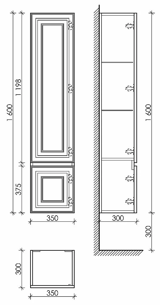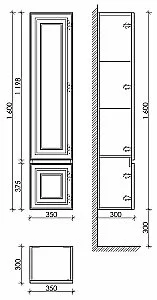Шкаф-пенал SANCOS Very подвесной правый/левый,  Doha Soft , две дверцы, петли с доводчиками, расположение петель R или L, 350х300х1600 мм