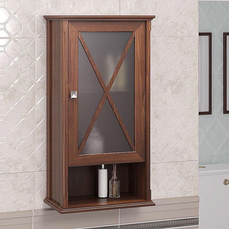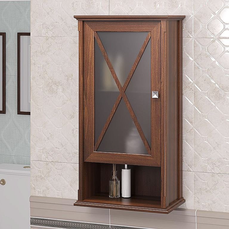 Шкаф для ванной Опадирис из коллекции Палермо оснащен одной дверкой со вставкой из стекла, внутреннее пространство за которой разделено полочкой, а так же открытой нишей для хранения небольших предметов и косметических средств.