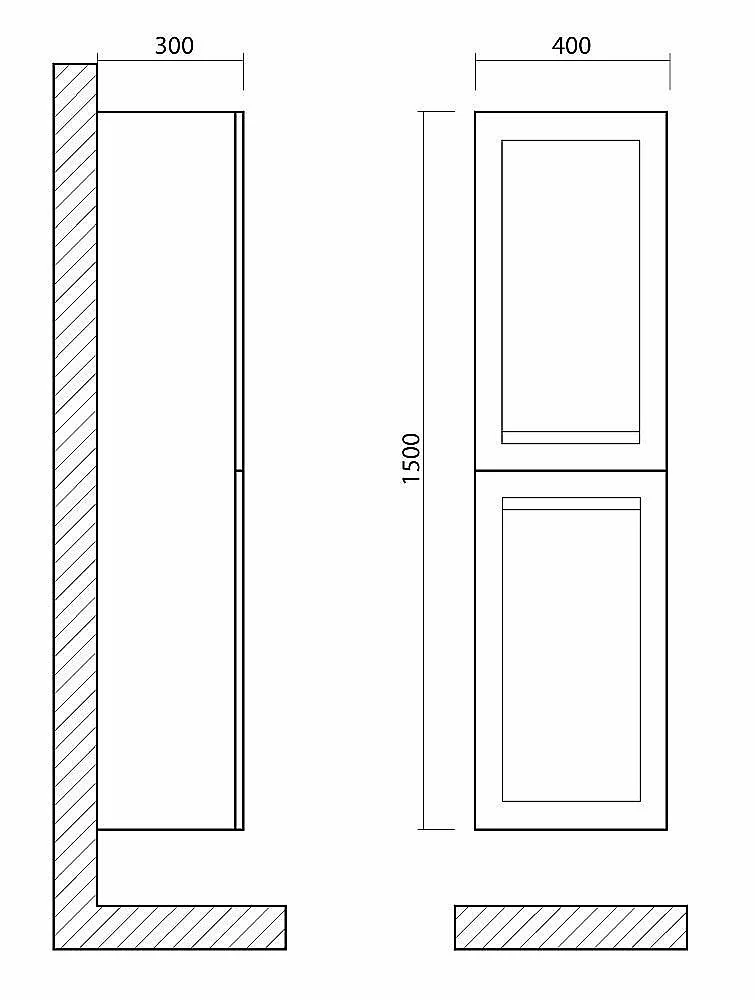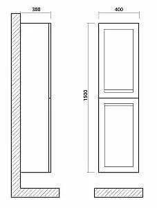 Шкаф подвесной для ванной комнаты. Система хранения: две распашные дверцы, две полки внутри. Дополнительная информация: двери оснащены доводчиками, с врезной (фрезерованной) ручкой в плоскости фасада. Гарантия 2 года.