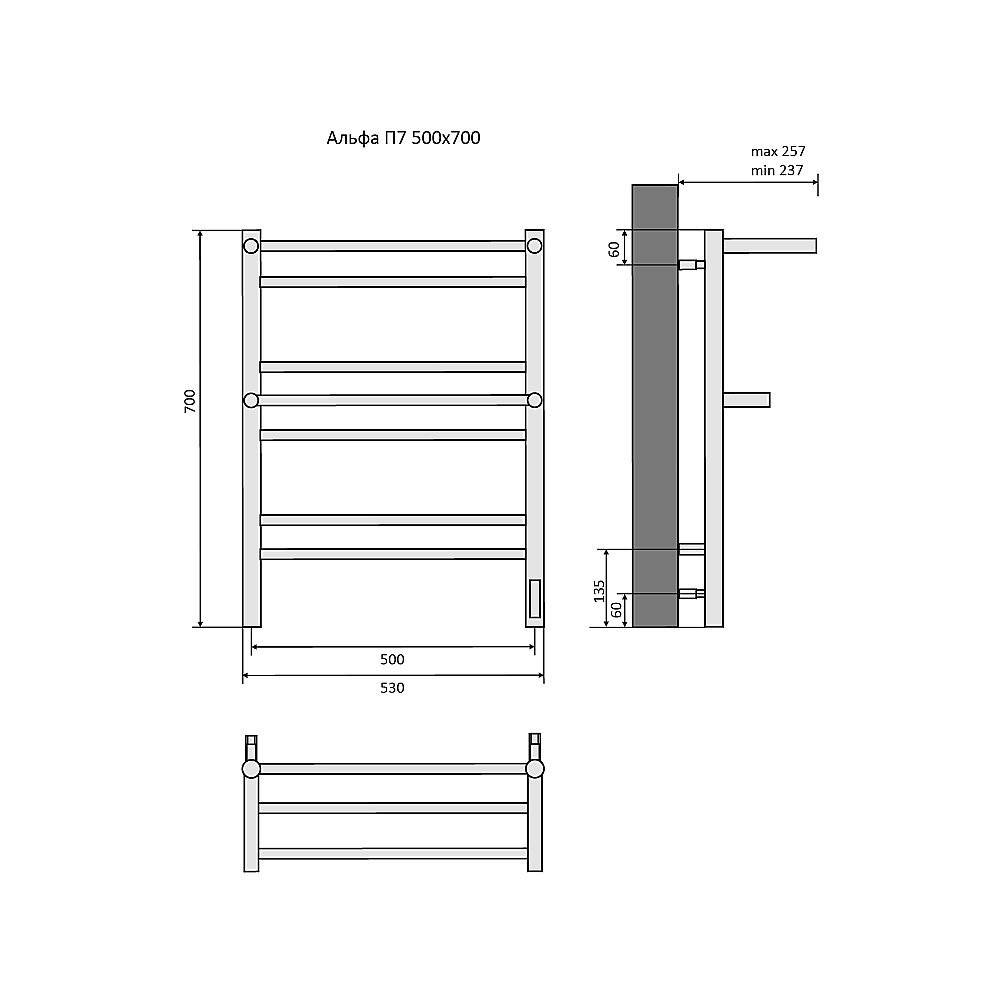 Полотенцесушитель Aquatek Альфа П7 500х700 AQ EL RRP0770BL черный муар