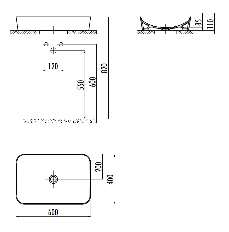 Раковина Creavit Ultra 60 UL060-00BM00E-0000 базальт матовая