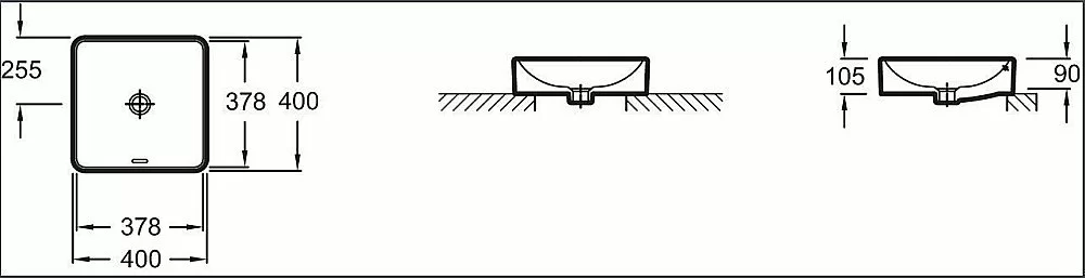 Накладная раковина изготовлена из санфарфора, превосходного материала, сочетающего в себе прочность и блеск.