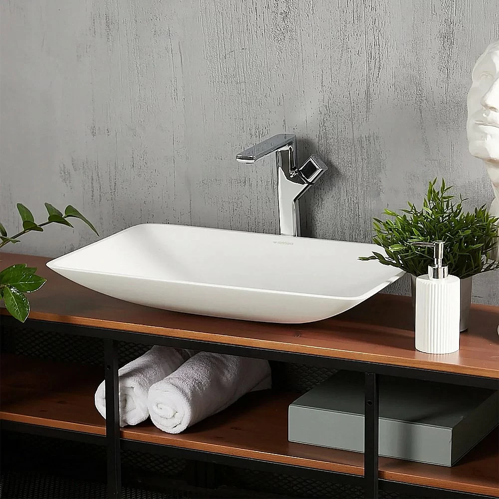 Раковина из искусственного камня для ванной комнаты. Легкая и «воздушная». Востребованной прямоугольной формы. Устанавливается на поверхность столешницы или мебели сверху накладным способом. Дно чаши не плоское, вода по стенкам беспрепятственно стекает в сливное отверстие до последней капли – вода не застаивается после активного использования. Stelvio Quattro имеет матовую, бархатистую поверхность. Полимерный материал принимает температуру окружающей среды, поэтому в жилом пространстве данная модель раковины всегда будет приятной на ощупь. Уход за раковиной из искусственного камня прост: в большинстве случаев достаточно протереть поверхность влажной губкой с чистящим средством. Материал не впитывает влагу, не порист, непроницаем для плесени, бактерий и грибков. Материал: Акриловый камень. Поверхность: Белая матовая Velvet Touch. Перелив: Без перелива. Установка: На столешнице. Форма: Прямоугольная. Размер: Средняя. ДxШxВ: 600x380x100 мм. Вес: 12100 г. Гарантия: 5 лет.