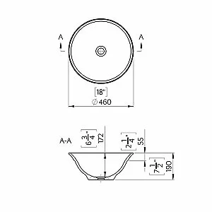 TW collection Раковина Ø46см., накладная, без перелива, цвет: белый глянцевый