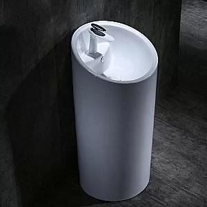 Форма раковины — округлая или почти овальная чаша на стойке — создаёт мягкий контраст с прямыми линиями мебели или плитки, при этом остаётся современной и универсальной. Для молодой аудитории такая раковина будет символом дизайнерской мысли: эффектная высота, отсутствие тумбы, визуальная лёгкость и современный белый цвет. Для более зрелой аудитории важна надёжность: материал выдерживает ежедневную эксплуатацию, поверхность легко обслуживается, а конструкция выглядит солидно и рассчитана на длительный срок службы.