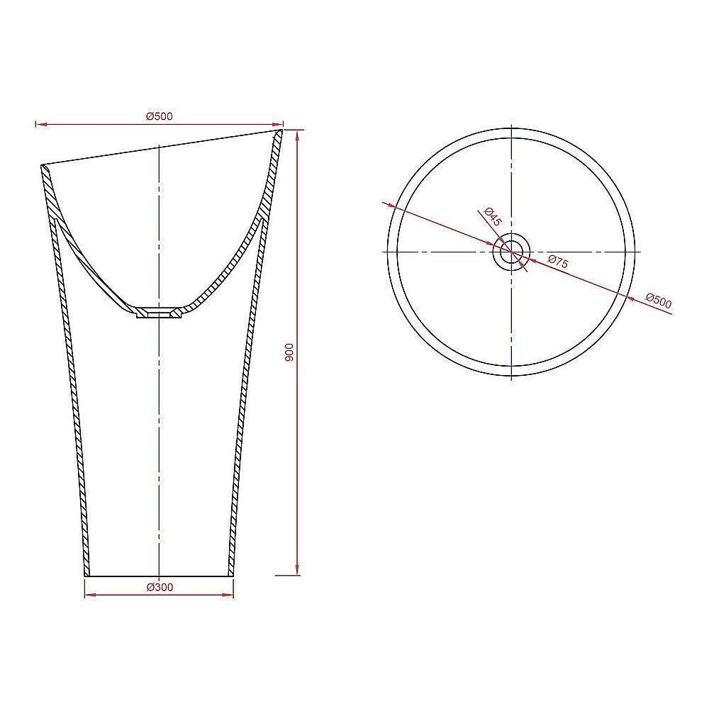 Раковина из искусственного камня для ванной комнаты. Похожие модели – Montebianco Pisa и Pisa Rubinetto. Модель напольного размещения. Безусловным практическим и эстетическим преимуществом является коническая форма. Раковина занимает мало места на полу, при этом за счет расширения к верху функционально очень удобна: вода не разбрызгивается и не выплескивается из объемной, чуть наклоненной к пользователю чаши. Благодаря большой видимой площади белоснежно-матовой, бархатистой поверхности великолепно выглядит в интерьере, является самостоятельной композицией. Популярна среди владельцев частных домов с просторными, светлыми помещениями ванных комнат. Высота раковины и небольшой наклон чаши удобны как для высоких людей, так и небольшого роста, в том числе детей. Крепление смесителя либо к стене, либо напольное, на ножке, подчеркивает современный дизайн и технологичность конструкции. Материал не впитывает влагу, не порист, непроницаем для плесени, бактерий и грибков. Отличия от моделей Pisa и Pisa Rubinetto – в размерах чаши (у Pisa Cono она более объемная), форме (две другие модели – прямые) и месте размещения смесителя (в Pisa Rubinetto он устанавливается на поверхность раковины). Перелив: Без перелива. Установка: Напольная. Форма: Дизайнерска, Круглая. Размер: Большая. ДxШxВ: 500x500x900 мм. Вес: 78300 г. Гарантия: 5 лет.