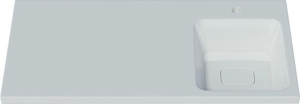 Раковина Orange ST-100 белая. Модель рассчитана на мебельную установку и работу в связке со стиральной машиной, поэтому зона умывания выглядит собранно и чисто: ровная прямоугольная плоскость поддерживает порядок на столешнице, а крыло даёт место под повседневные вещи без визуального шума. Смеситель предусмотрен по центру — так фронт остаётся симметричным и удобным в повседневном сценарии. Искусственный камень воспринимается монолитно, с ровной поверхностью, а грязеотталкивающее покрытие упрощает уход и помогает дольше сохранять свежий вид без лишних усилий. Отсутствие перелива подчёркивает лаконичность решения и делает силуэт более цельным.