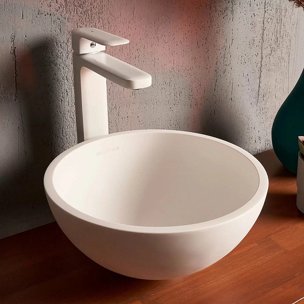 Раковина из искусственного камня для ванной комнаты, представитель линейки бестселлеров Montebianco Nemi / Nemi Due / Nemi Tre. Круглой формы, компактного размера, что позволяет комфортно разместить данную модель как в небольшом помещении, так и сразу несколько раковин в местах общего пользования в бизнес-центрах, гостиницах, ресторанах, аэропортах. Чаша максимальной глубины среди моделей Nemi. Вода не выплескивается и не разбрызгивается. Раковина Montebianco Nemi устанавливается как на поверхность столешницы или мебели накладным способом, так и бесшовно вклеивается в столешницу любого цвета, создавая цельную поверхность. Уход за раковиной из искусственного камня прост: в большинстве случаев достаточно протереть поверхность влажной губкой с чистящим средством. Материал не впитывает влагу, не порист, непроницаем для плесени, бактерий и грибков. Nemi имеет матовую, бархатистую поверхность. Полимерный материал принимает температуру окружающей среды, поэтому в жилом пространстве данная модель раковины всегда будет приятной на ощупь. Отличие Nemi от Nemi Due и Nemi Tre – в размерах: Nemi имеет средний диаметр в линейке и максимальную глубину. Материал: Акриловый камень. Поверхность: Белая матовая Velvet Touch. Перелив: Без перелива. Установка: На столешнице, Вклеивается под столешницу. Форма: Круглая. Размер: Малая. ДxШxВ: 293x293x145 мм. Гарантия: 5 лет.