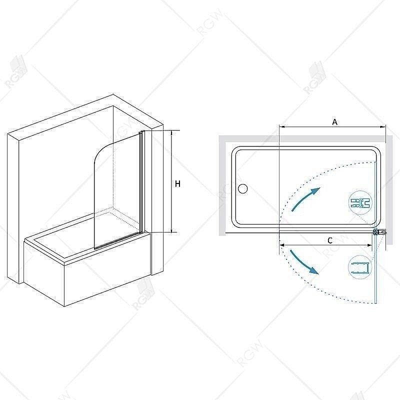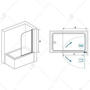 Шторка на ванну маятниковая. Толщина закаленного, безопасного стекла 6 мм.