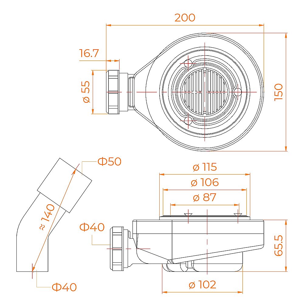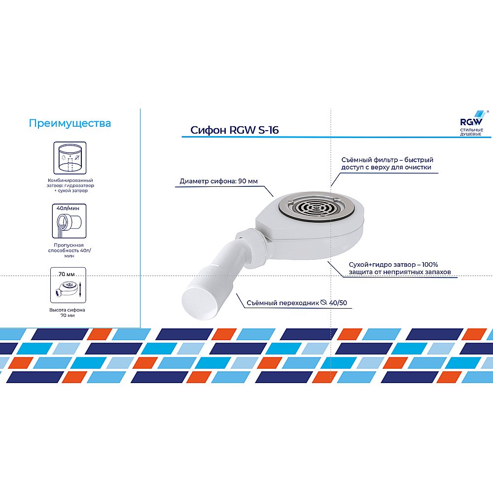 • высокая пропускная способность сифона 40 л/мин. обеспечивает быстрый сток воды, что позволяет компенсировать отсутствие глубокой купели в поддоне.