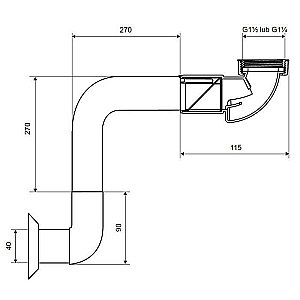 - используется сухой сифон с пропускной способностью 36 л/мин;