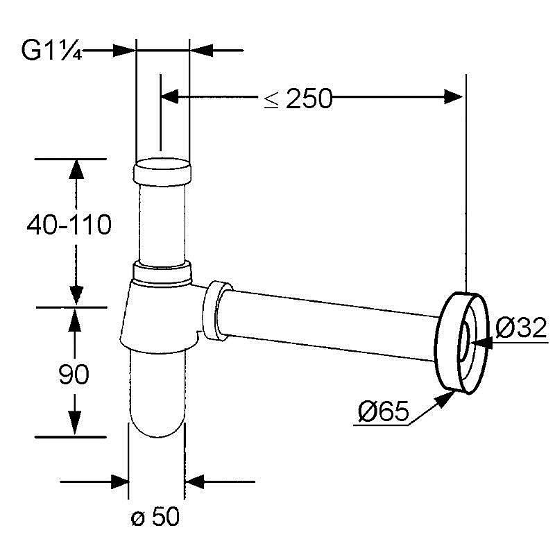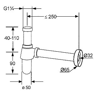 Отводная труба напольная для сифона Kludi 84500805-00 68х22