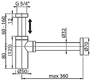 Латунный телескопический сифон в белого матовом цвете. Подходит для всех настенных умывальников и умывальников на столешнице со сливом диаметром 46 мм, кроме умывальника BeHappy II.