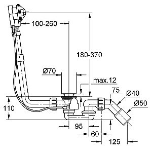 Сливной и переливной гарнитур Grohe Talento для нормальных ванн и глубоких поддонов скрытый монтаж с тягой сифоном 45° сливной дугой (без комплекта верхней монтажной части)