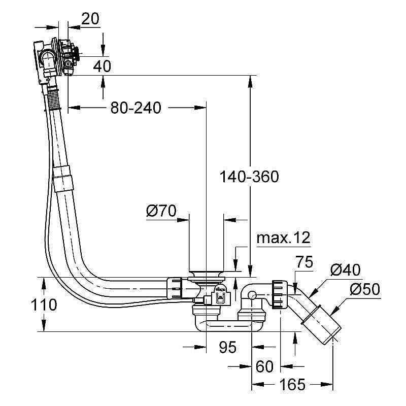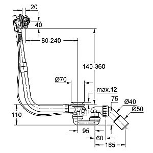 Наливной, сливной и переливной гарнитур Grohe Talentofill для нормальных ванн скрытый монтаж с сифоном и сливной дугой 45° сборка согласно DIN 1988 только со встроенным прерывателем трубы вид A2 (28 994) или соединительным гарнитуром Talentofill (28 995) (без комплекта верхней монтажной части)