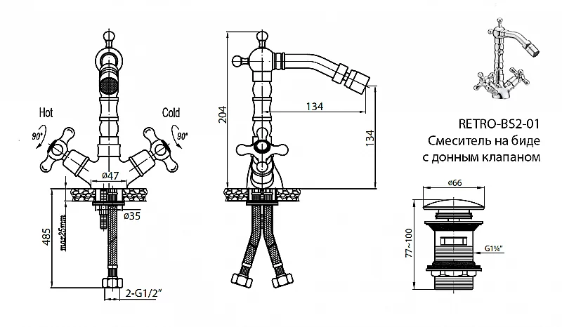 Смеситель для биде Cezares RETRO-BS2-BLC белый/хром