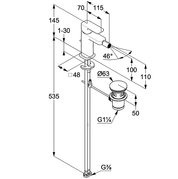 Смеситель для биде Kludi Renon 422163975 черный матовый