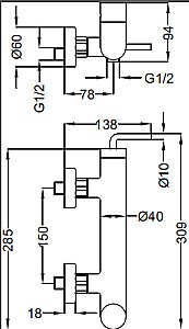 • однорычажный смеситель для ванны и душа;