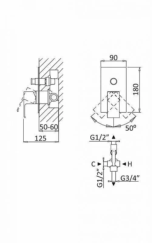 • Тип подводки: внутренний (скрытый) монтаж 1/2"