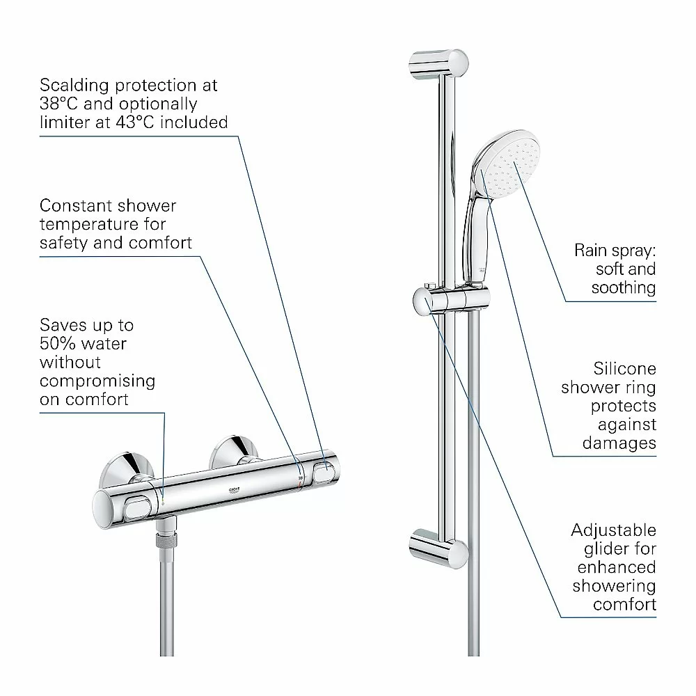 Смеситель для душа из коллекции Grohtherm 500 от немецкого производителя Grohe с душевым гарнитуром