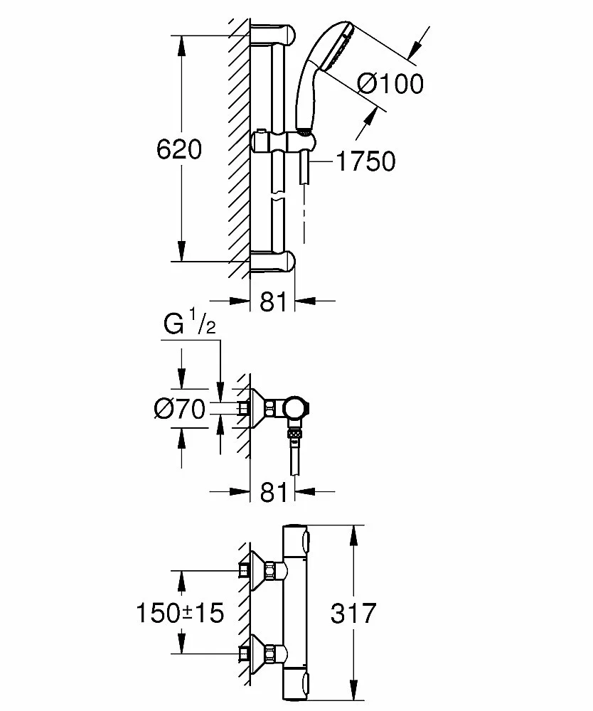 Смеситель для душа Grohe Grohtherm 500 34796001 хром