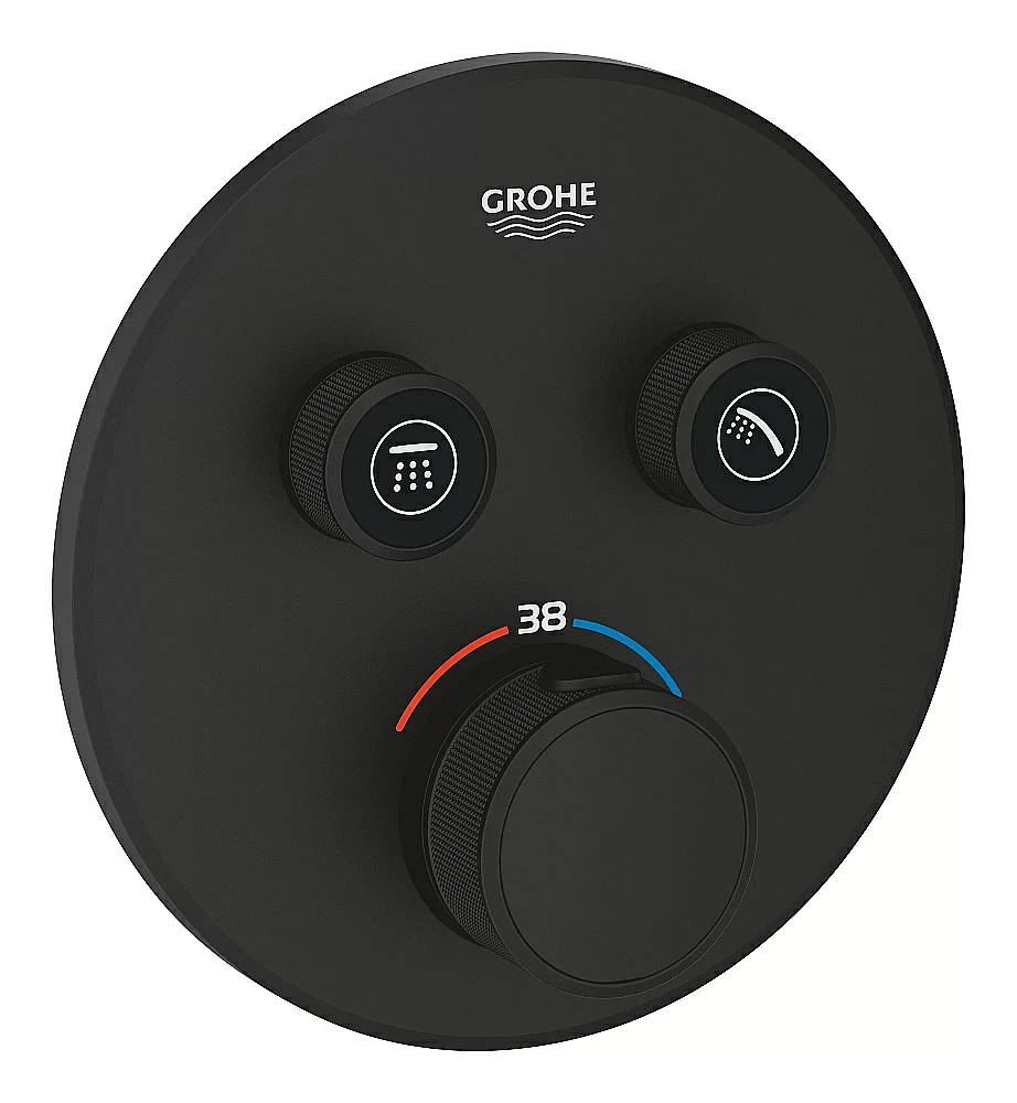 • Инновационная технология SmartControl позволит вам регулировать напор воды с помощью нажатия и поворачивания кнопки. Два вентиля позволят вам переключаться или совмещать верхний и ручной души или душ и ванну. Встроенная технология GROHE TurboStat предотвратит неприятные скачки температуры. Маркировка EasyLogic и иконки на кнопках с заменяемыми символами делают использование термостата интуитивно понятным. Кнопка GROHE SafeStop позволит вам установить максимальную температуру в 38°C, что предотвратит ошпаривание, а ограничитель температуры GROHE SafeStop Plus предоставит опцию увеличить максимум температуры до 43°C для большего уровня безопасности.
